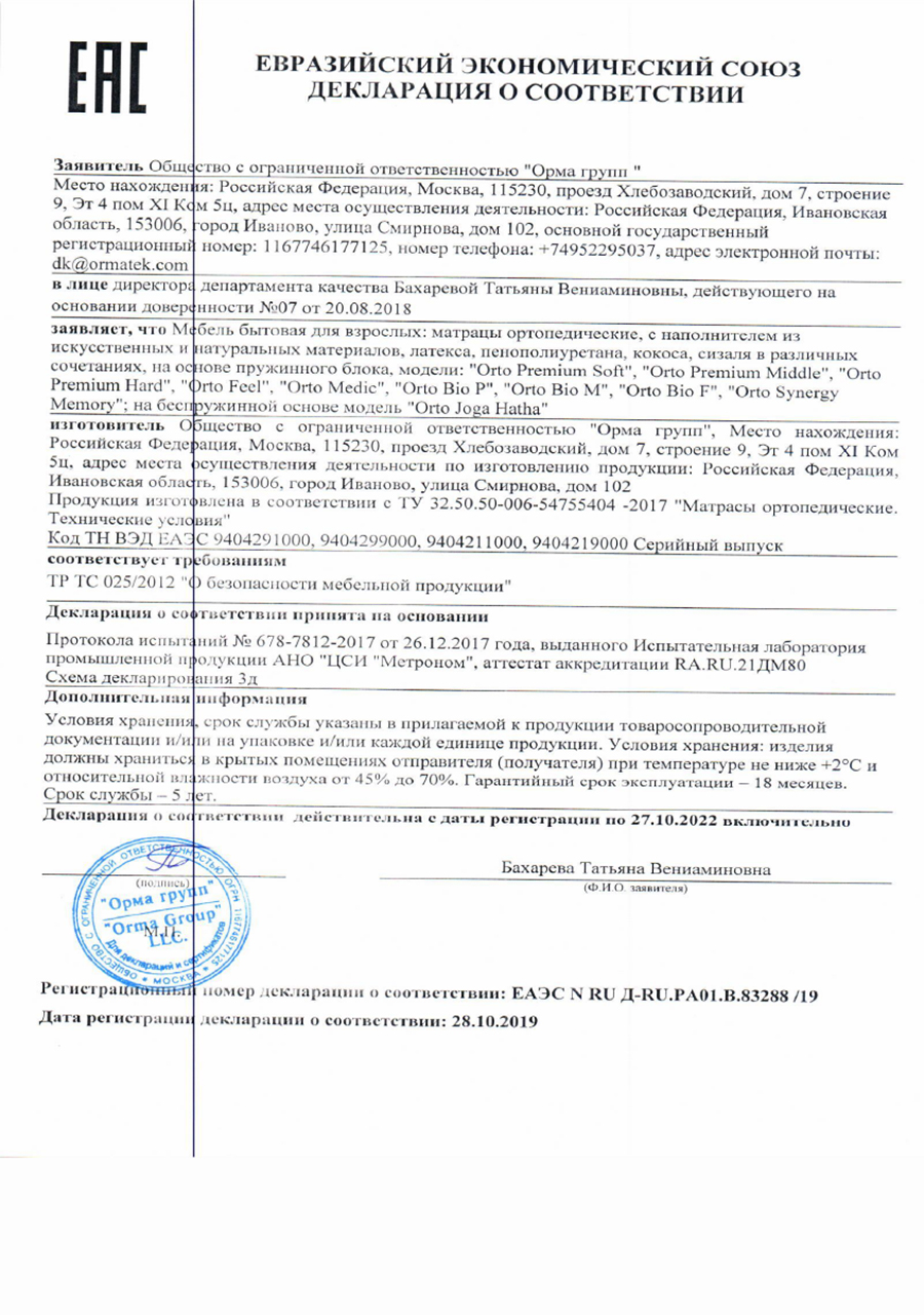 Гарантийные сроки от 18 месяцев до 60 месяцев, с даты, которая указана в накладной, в зависимости от модели матраса